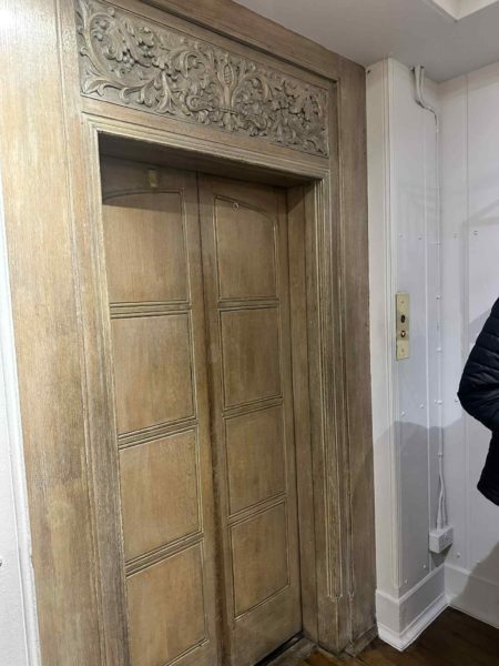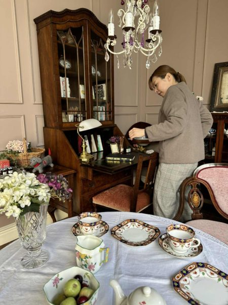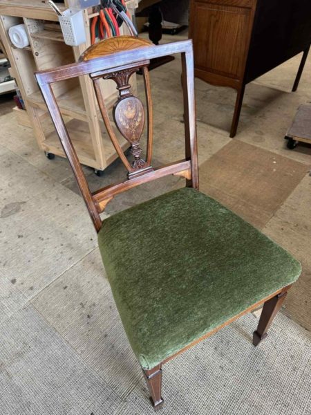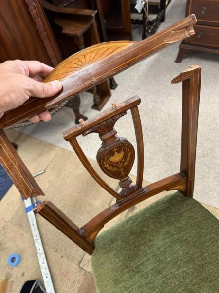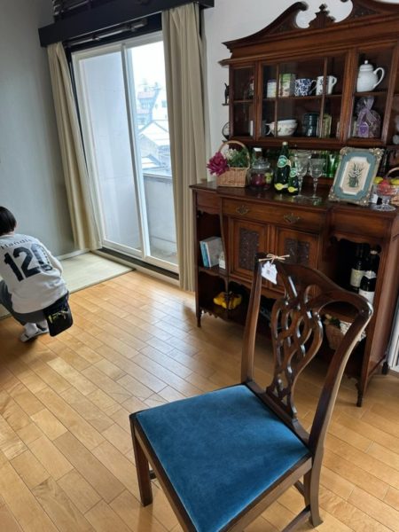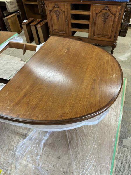 倉庫ではG-プランのダイニングテーブルの修復中。