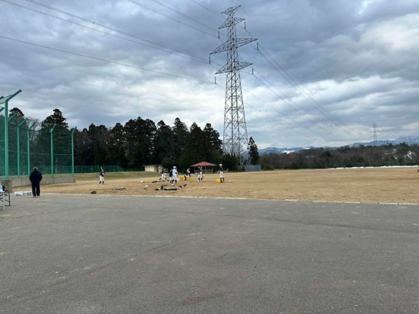 PS グランドの雪も溶けてきてりょうたろうの中学硬式野球の外練習始まりました。