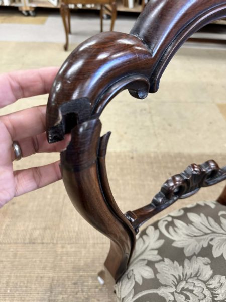 お客様が大事にされているアンティークチェアーなので修復ガンバリマス。