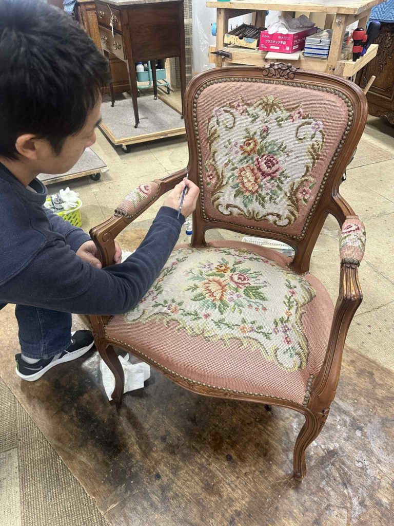 さて、今日は天気もよかったのでアンティークのウェルシュドレッサーやオケージョナルテーブルの天板の剥離作業を行いしました。