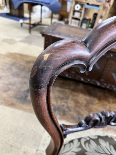 お客様から修理でお預かりしていたアンティークのバルーンバックチェアの修復開始しました。