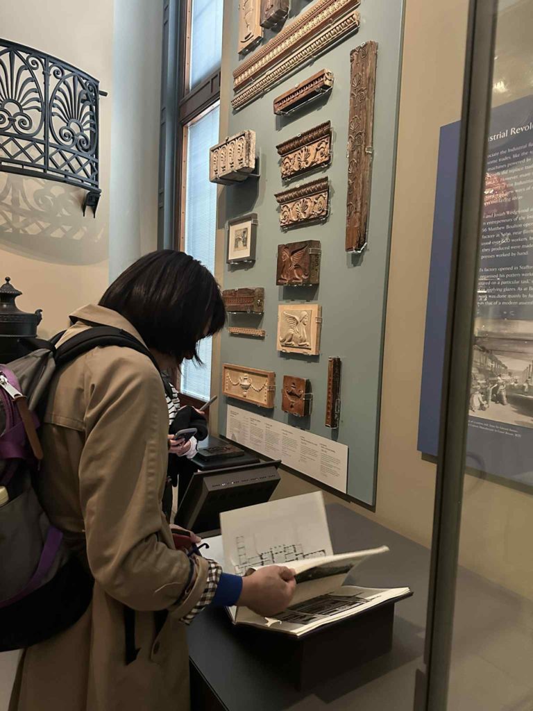 実はこれ、Handleで扱っているアンティーク家具でも、キャビネットやチェストの扉によく使われている装飾なんですよね。 「おっ!ここにもリネンフォールド発見!」って、思わず指差して確認しちゃいました(笑) やっぱり本場のデザインを間近で見ると、家具のデザインのルーツが分かって勉強になりますね~。